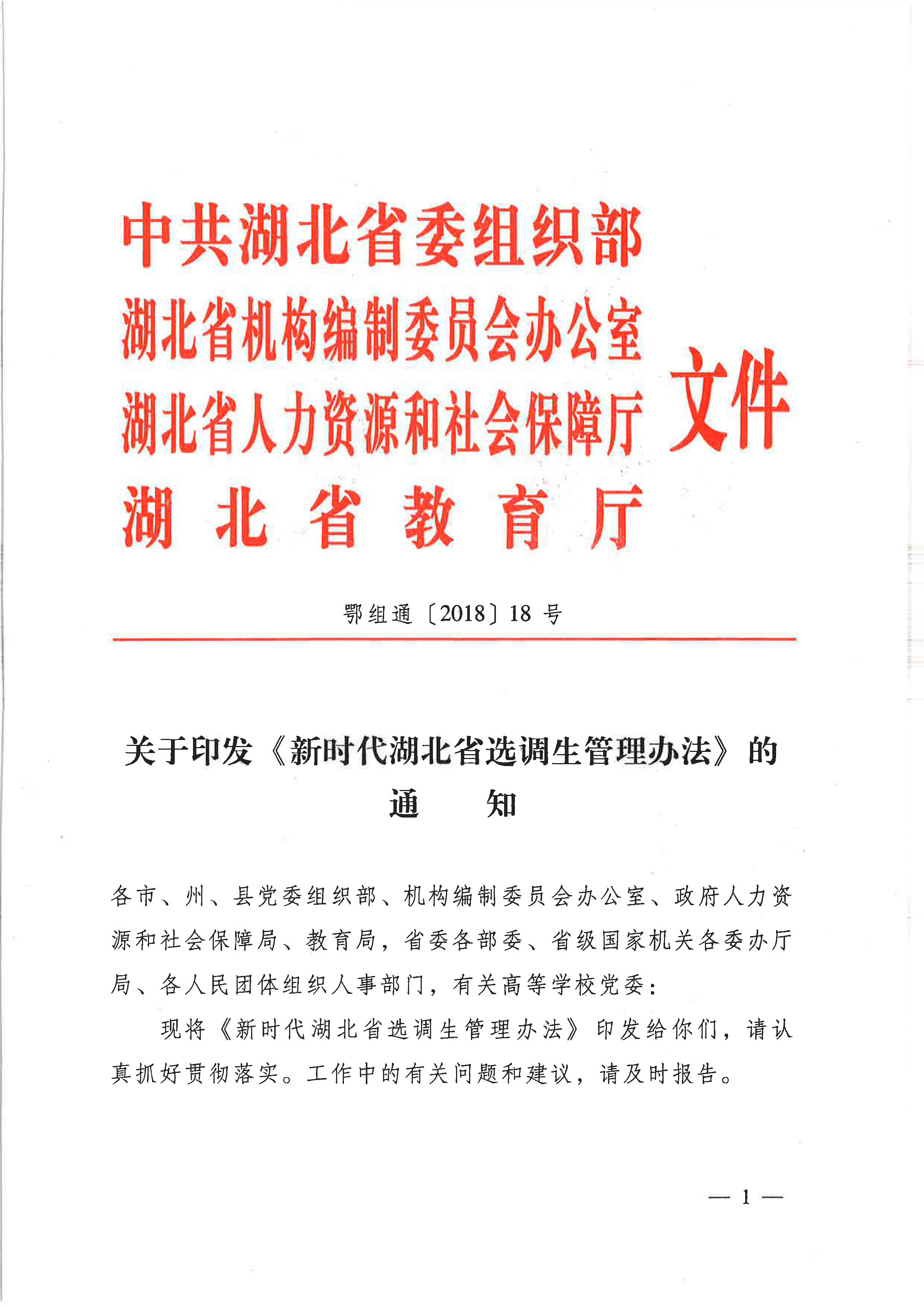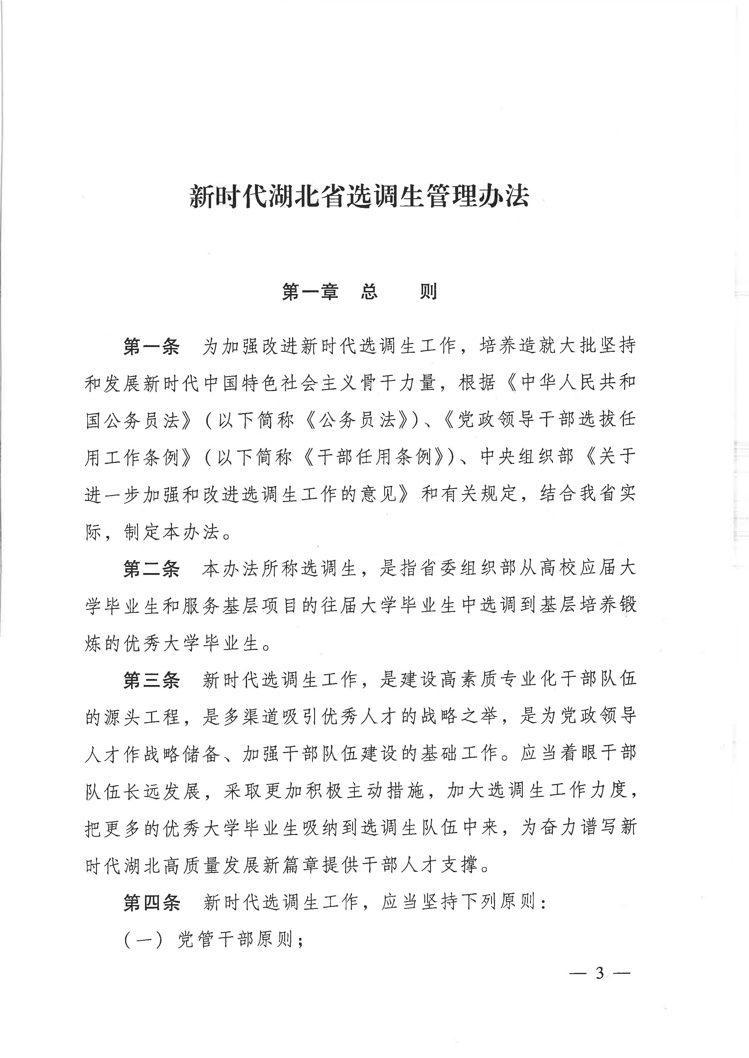 关于印发《新时代湖北省选调生管理办法》的通知
